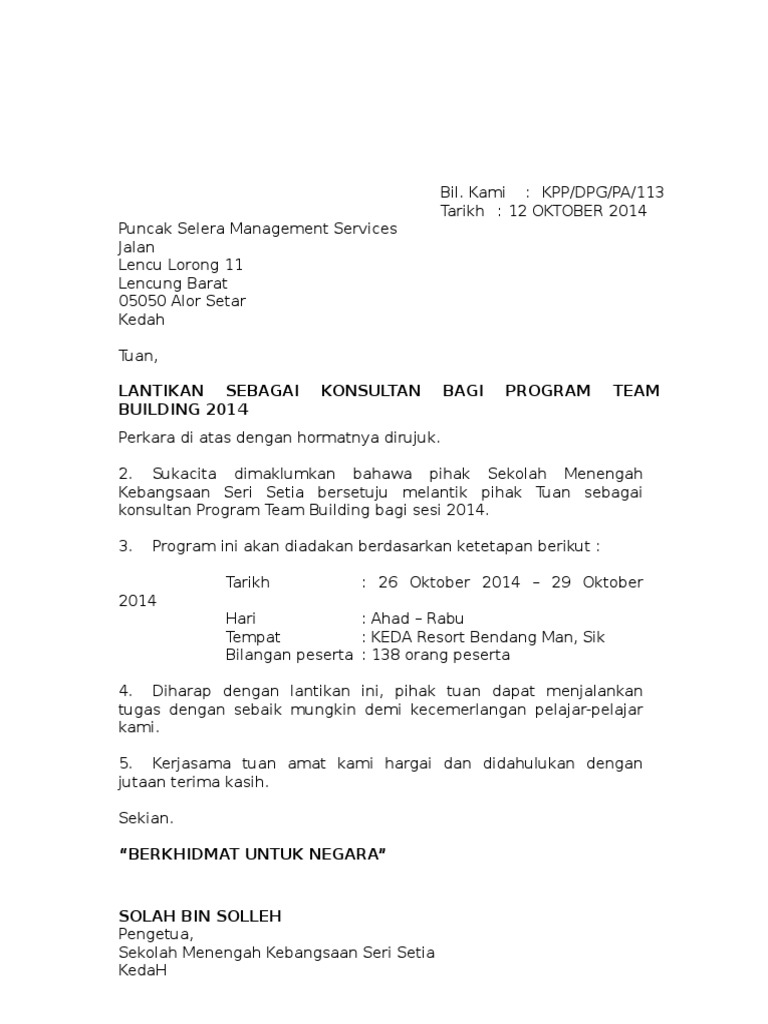 . Surat jpa sulit 376bhg105. Contoh surat pelantikan jawatankuasa sebut harga cute766. Contoh Surat Perlantikan Rasmi.